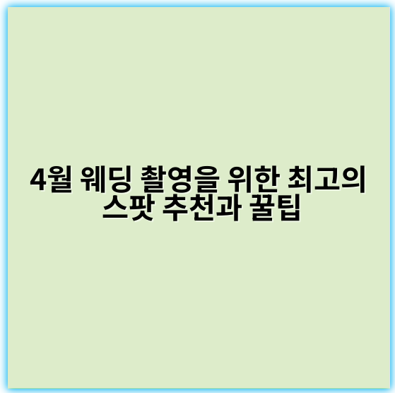이와 같은 명소들은 자연 친화적이면서도 사진이 잘 나오는 곳으로 손꼽히며, 4월의 따뜻한 햇살과 적당한 바람이 촬영을 더욱 풍성하게 만들어줍니다. 현장 답사와 미리 촬영 계획을 세우는 것도 잊지 마세요. 자연광과 풍경을 잘 활용하면 더 특별한 웨딩 촬영이 될 수 있습니다.