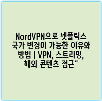 NordVPN으로 넷플릭스 국가 변경이 가능한 이유와 방법 | VPN, 스트리밍, 해외 콘텐츠 접근” 에 대해 자주 묻는 질문 TOP 5