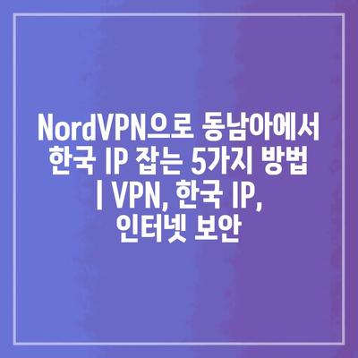 NordVPN으로 동남아에서 한국 IP 잡는 5가지 방법 | VPN, 한국 IP, 인터넷 보안 에 대해 자주 묻는 질문 TOP 5