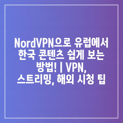 NordVPN으로 유럽에서 한국 콘텐츠 쉽게 보는 방법! | VPN, 스트리밍, 해외 시청 팁