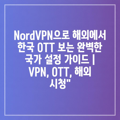 NordVPN으로 해외에서 한국 OTT 보는 완벽한 국가 설정 가이드 | VPN, OTT, 해외 시청”