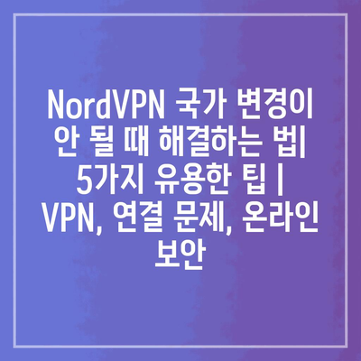 NordVPN 국가 변경이 안 될 때 해결하는 법| 5가지 유용한 팁 | VPN, 연결 문제, 온라인 보안 에 대해 자주 묻는 질문 TOP 5