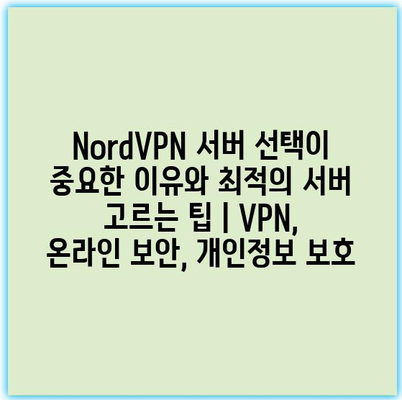 NordVPN 서버 선택이 중요한 이유와 최적의 서버 고르는 팁 | VPN, 온라인 보안, 개인정보 보호