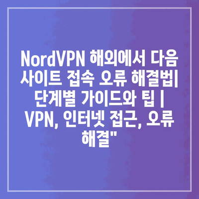 NordVPN 해외에서 다음 사이트 접속 오류 해결법| 단계별 가이드와 팁 | VPN, 인터넷 접근, 오류 해결