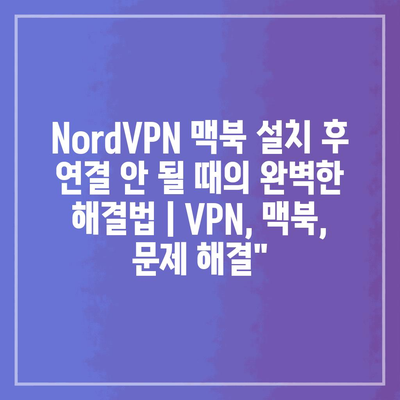 NordVPN 맥북 설치 후 연결 안 될 때의 완벽한 해결법 | VPN, 맥북, 문제 해결”