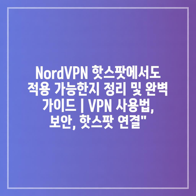 NordVPN 핫스팟에서도 적용 가능한지 정리 및 완벽 가이드 | VPN 사용법, 보안, 핫스팟 연결”