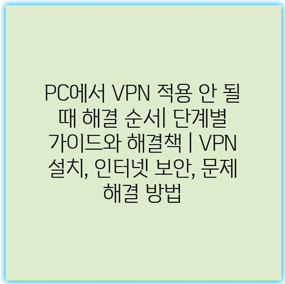 PC에서 VPN 적용 안 될 때 해결 순서| 단계별 가이드와 해결책을 제공합니다.