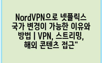 NordVPN으로 넷플릭스 국가 변경이 가능한 이유와 방법 | VPN, 스트리밍, 해외 콘텐츠 접근” Read More