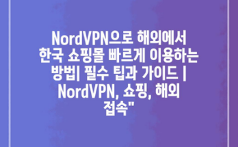 NordVPN으로 해외에서 한국 쇼핑몰 빠르게 이용하는 방법| 필수 팁과 가이드 | NordVPN, 쇼핑, 해외 접속” Read More
