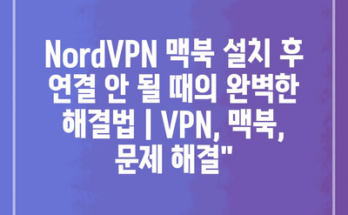 NordVPN 맥북 설치 후 연결 안 될 때의 완벽한 해결법 | VPN, 맥북, 문제 해결”