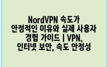 NordVPN 속도가 안정적인 이유와 실제 사용자 경험 가이드 | VPN, 인터넷 보안, 속도 안정성 Read More