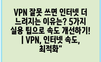 VPN 잘못 쓰면 인터넷 더 느려지는 이유는? 5가지 실용 팁으로 속도 개선하기! | VPN, 인터넷 속도, 최적화” Read More
